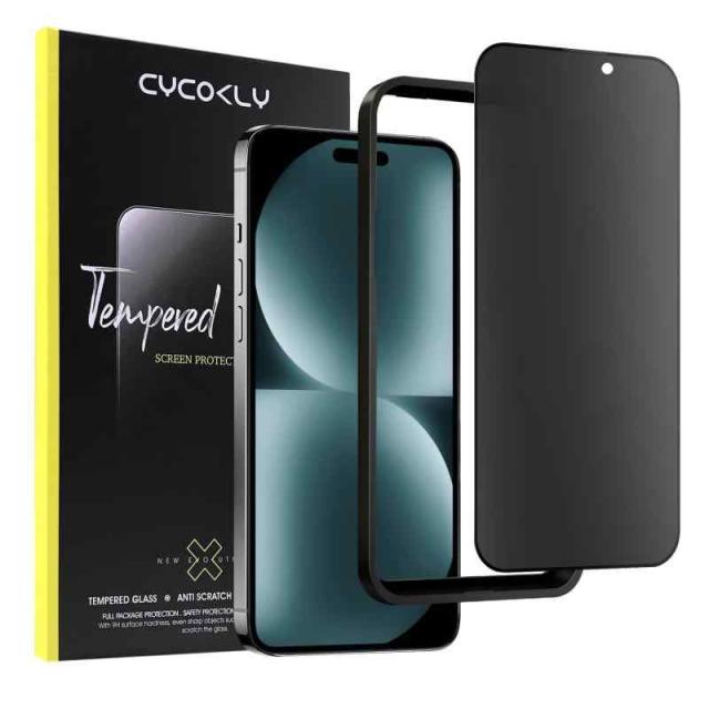 CYCOKLY iPhone15pro max用(6.7インチ)ガラスフィルム 【覗き見防止+アンチグレア】強化ガラス 液晶保護フィルム サラサラ感 ガイド枠付き