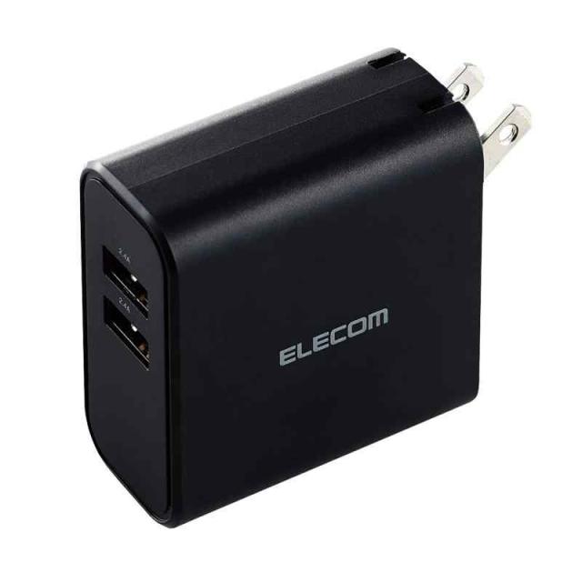 エレコム 充電器 USB コンセント 合計24W 2ポート USB-A 折りたたみ式プラグ 2台同時充電 おまかせ充電 【 iPhone SE3/15/14/13/12/Android 各種対応】 ブラック EC-AC03BK