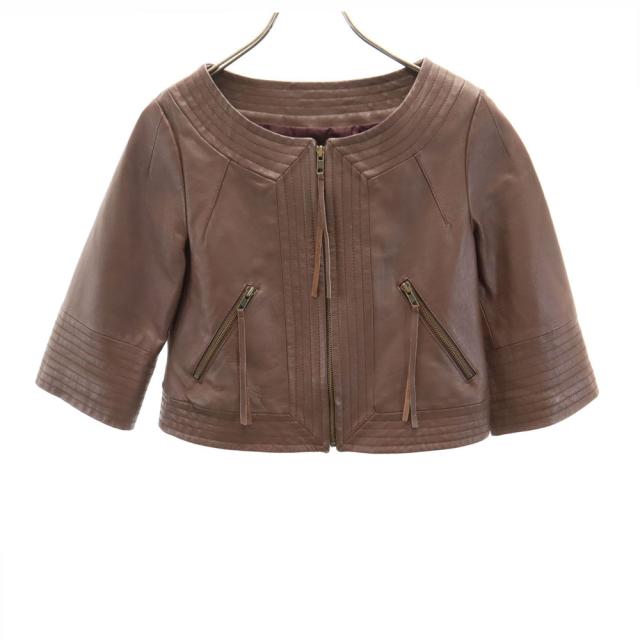 CYNTHIA GENUINE MADE 5分袖 豚革 ノーカラー レザージャケット ブラウン系 レディース