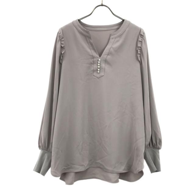 シップス 長袖 パール付き ブラウス L グレー SHIPS スキッパーシャツ レディース