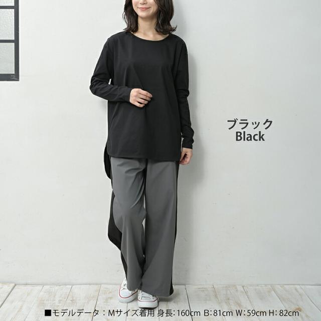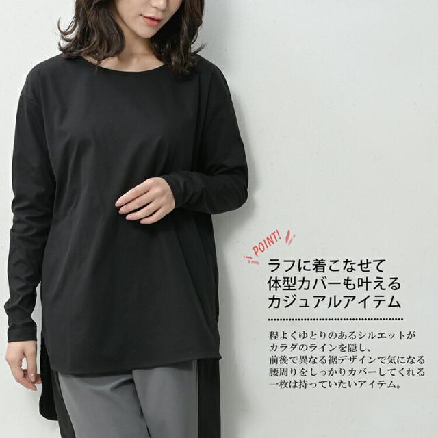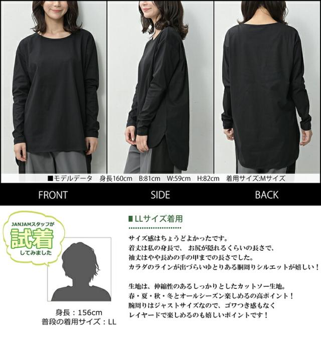 大きいサイズ レディース ロングTシャツ 長袖 メール便送料無料 バックテール スリット カットソー トップス M/LL/3L/4L/5L ゆったりサイズ ぽっちゃり女子 プラスサイズ