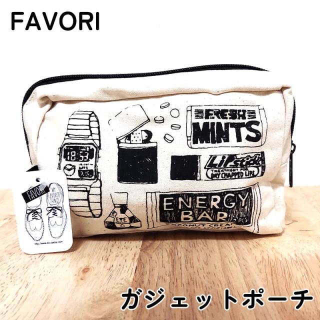 FAVORI ガジェットポーチ 小物入れ 手書き風 イラスト コスメ かわいい 化粧ポーチ ケース モノクロ ノスタルジー 可愛い 女性