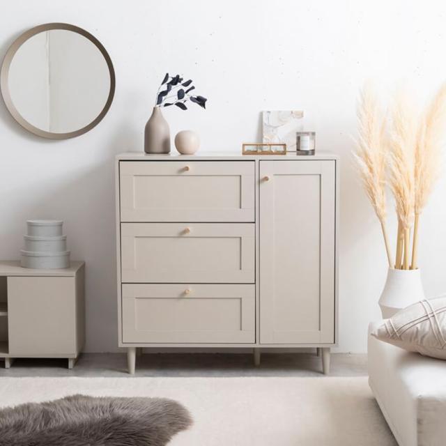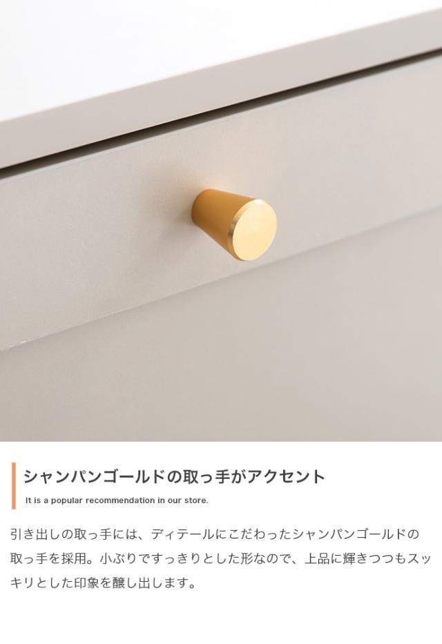 このキャビネットは、シャンパンゴールドの取っ手と海外インテリア風の「框デザイン」を取り入れたスタイリッシュな収納家具です。3段の引き出しと扉収納を備え、衣類や書類、小物などをすっきりと整理整頓。奥行38cmのスリム設計で、狭いスペースにも圧迫感を与えず、リビングや寝室で活躍します。可動棚がついた扉収納は15段階の高さ調節が可能で、様々なサイズの物をしっかり収納。お部屋をおしゃれに保ちながら、たっぷりと収納できる優れものです。