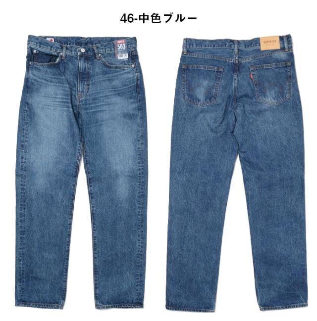 EDWIN エドウィン 503 レギュラーストレート ジーンズ メンズ E50323 デニム 綿100% 定番 パンツ 濃色ブルー 中色ブルー ジーパン 普通のストレート ブランド 紳士 丈上げ無料