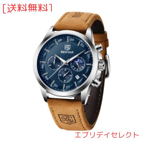 ◆商品名:腕時計 メンズ BENYAR マルチカレンダー、クロノグラフ、ビジネス フォーマル メンズ 革ベルト、アナログ腕時計、防水とスクラッチ耐性ブ