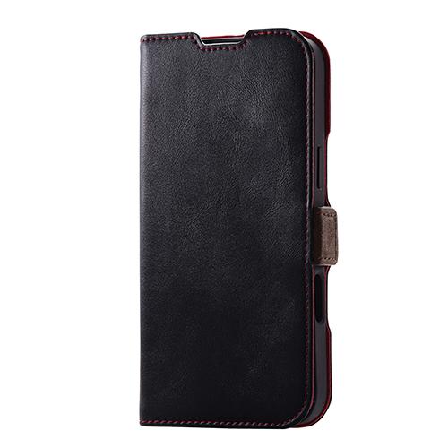 エレコム(ELECOM) PM-A24BPLFYBK ブラック iPhone 16 Plus用ケース レザー 手帳型 マグネット フラップ 衝撃吸収 スリム
