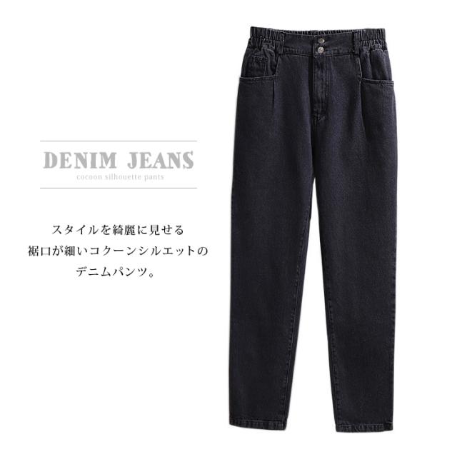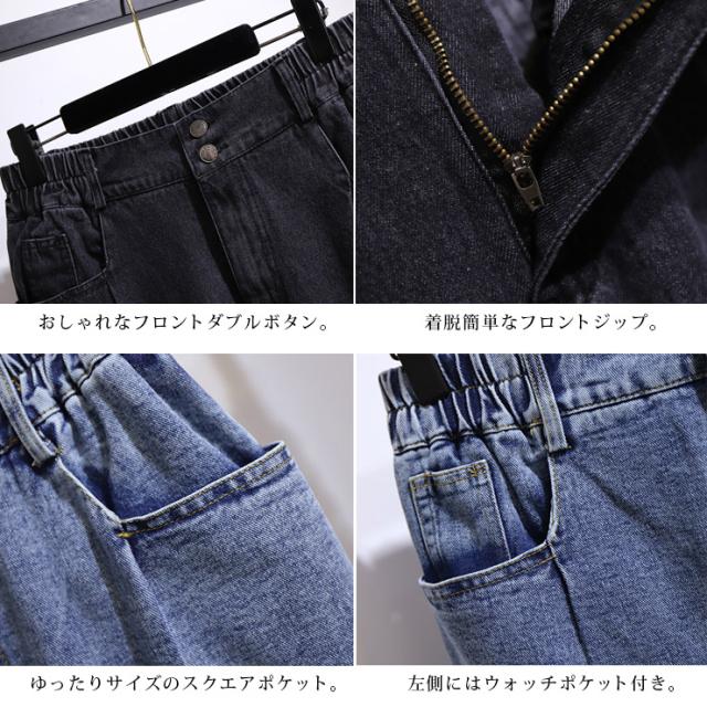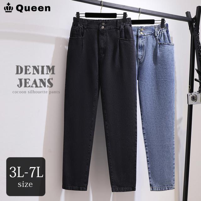 大きいサイズ レディース デニムパンツ テーパード ジーンズ ウエストゴム ゆったり 3L 4L 5L 6L 7L 秋冬 (61664)
