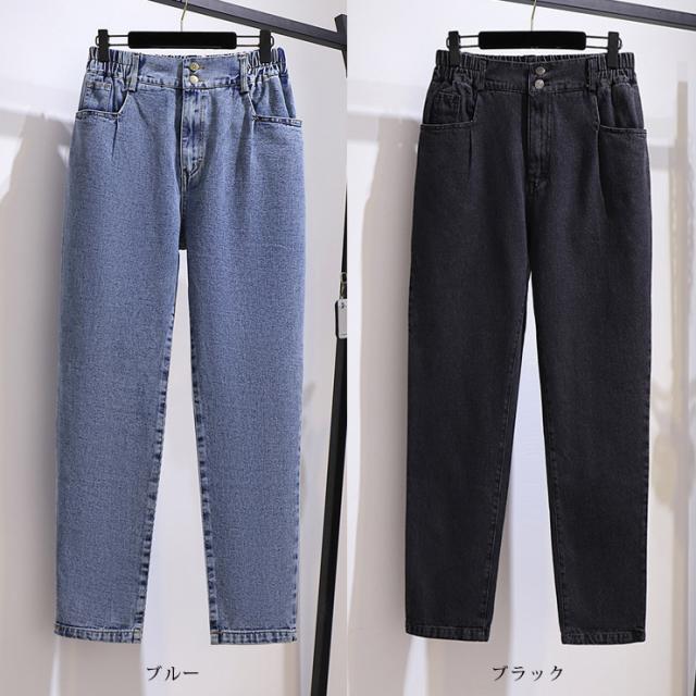 ★☆大きいサイズ レディース テーパードデニム デニムパンツ ジーンズ ウエストゴム 3L 4L 5L 6L 7L 秋冬 ブルー ブラック☆★