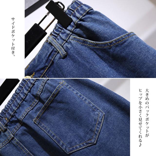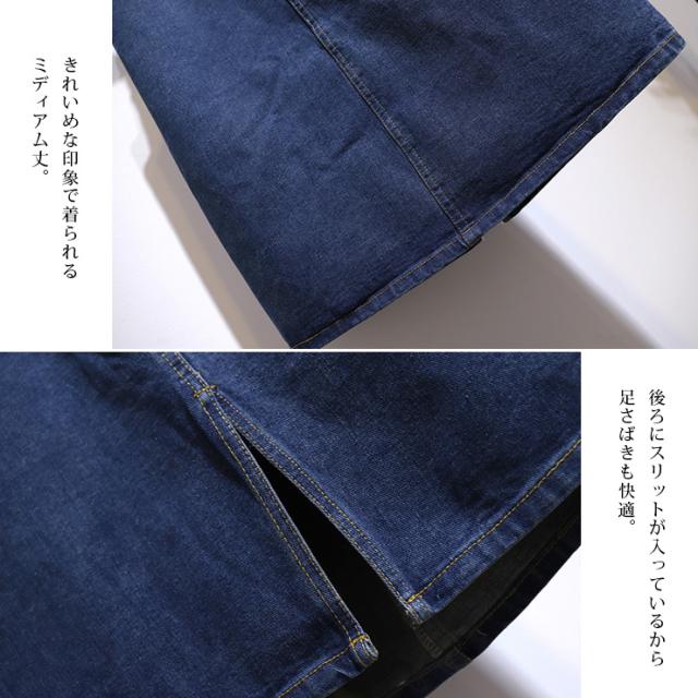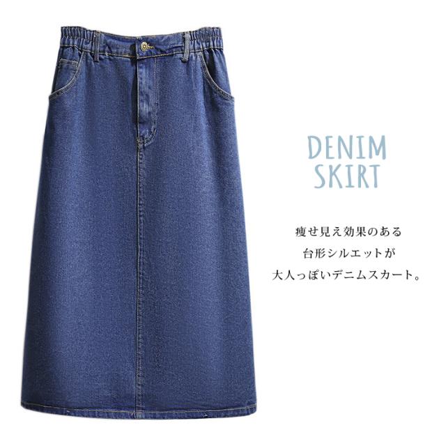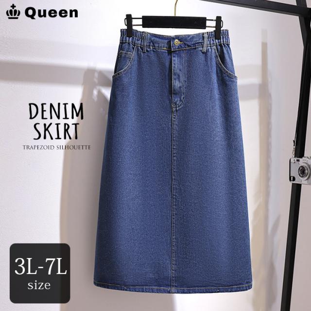 大きいサイズ レディース デニムスカート ミモレ丈 ウエストゴム 台形スカート バックスリット 3L 4L 5L 6L 7L 秋冬 春夏 (61983)