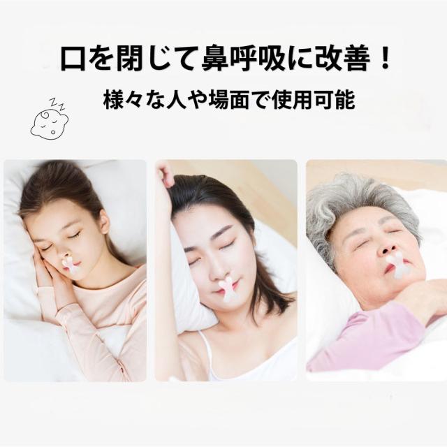 閉じた唇に貼って寝るだけで、睡眠の質を高めて、鼻呼吸の習慣を身に着けさせるサポートアイテムです。