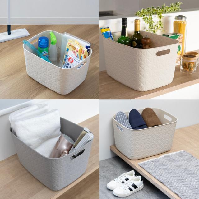 《 LH16518 LH12739 LH173 リサイクルプラスチック サステナブル ホワイト グレー ベージュ ブルー キルト調 積み重ね スタッキング 食品 ストック 掃除道具 衣類 洋服 本 雑誌 ブランケット スリッパ リビング デスク周り 卓上 タオル おもちゃ箱 おもちゃ収納 おもちゃ入れ おもちゃ オモチャ 玩具 オモチャ箱 収納用品 プラスチック製 プラスチック 柔らか やわらかい インナーボックス 収納バスケット 持ち運び 整理整頓 整理 整頓 片付け 約 幅38 奥行30 高さ22 cm センチ 》