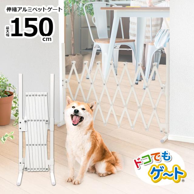 【ホワイト】ペットゲート アルミフェンス ALMAX アルマックス 幅150×高さ70 ドア 階段 ゲート 軽い 犬 SXG-0715 ベビーゲート