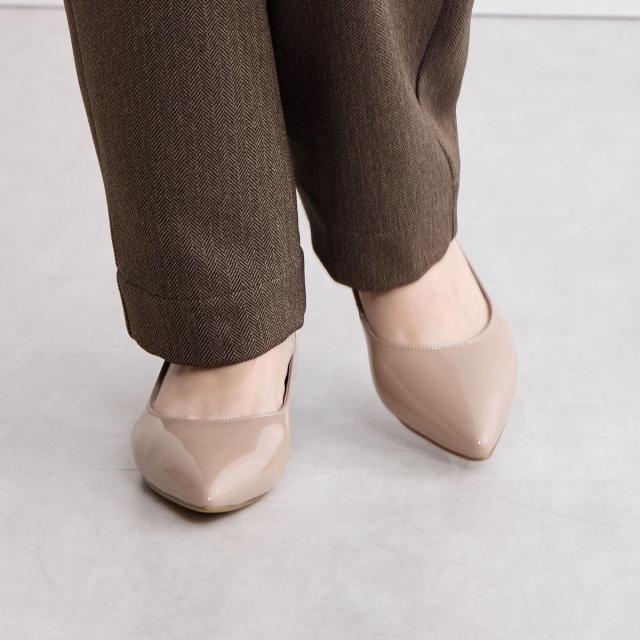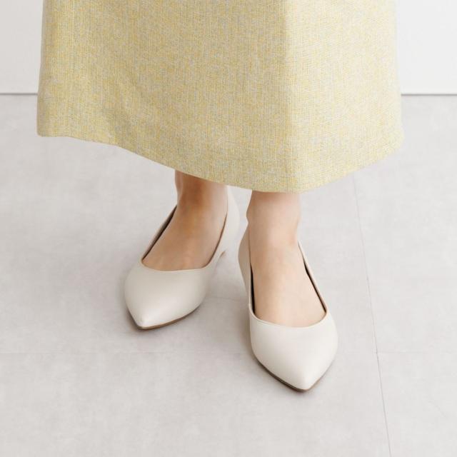 ローヒールながら足をすっきりとみせてくれるカットラインが美しいパンプスです。