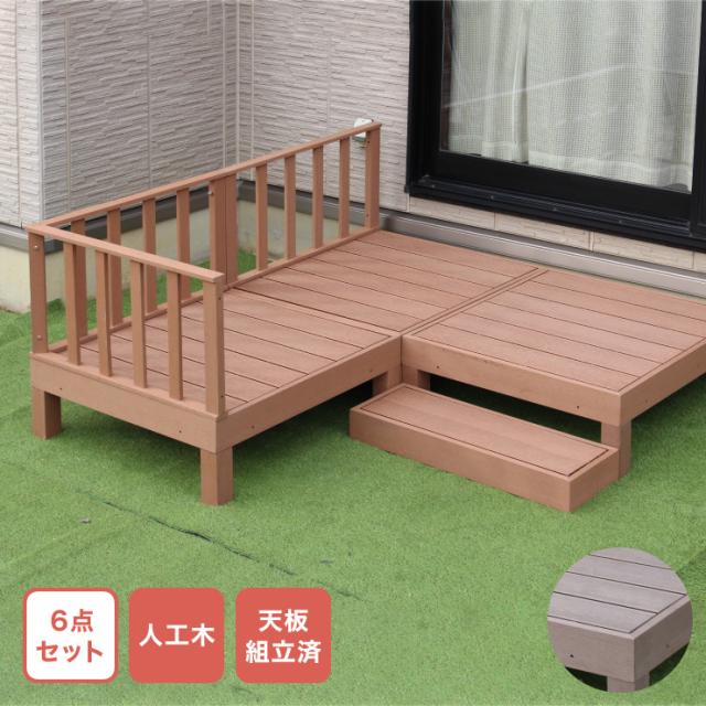 人工木ウッドデッキ 6点セット フルセット ウッドデッキ 木目調 樹脂 ガーデンデッキ ウッドデッキ(代引不可)【送料無料】