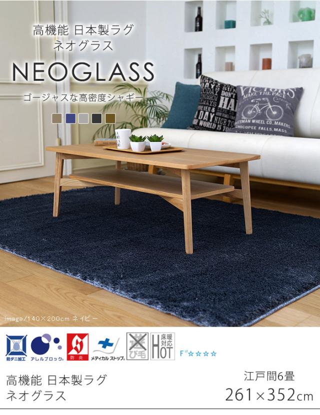 【日本製】 ラグマット NEOGLASS 261x352cm 長方形 ラグ マット カーペット 無地 シンプル 防音 防ダニ 床暖 ホットカーペット(代引不可)