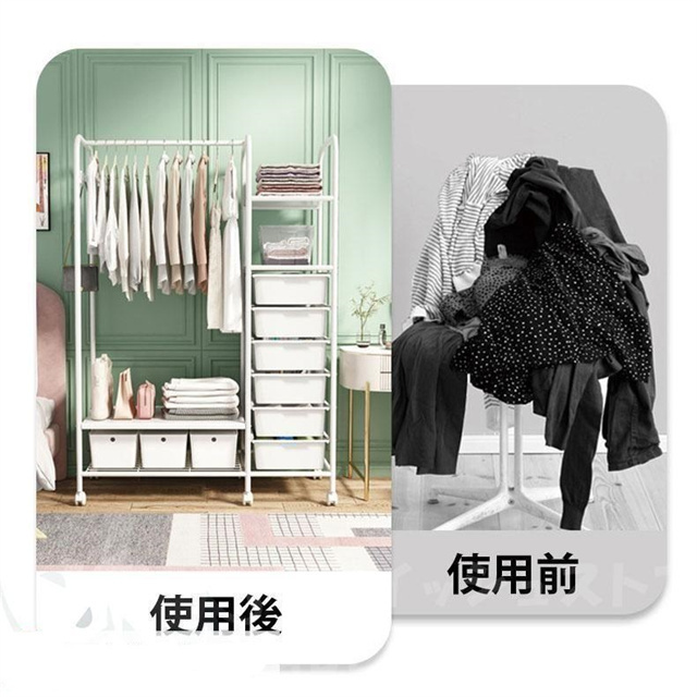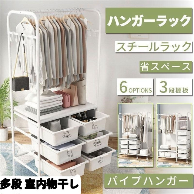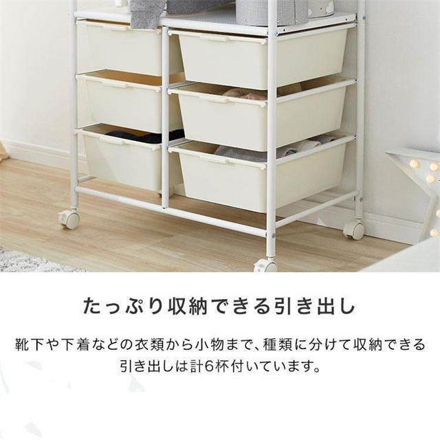 ハンガーラック スリム 頑丈 多段 室内物干し 洗濯物落ち防止対策 洋服掛けラック 引き出し キャスター付き パイプ 収納ラック ベビー 省スペース 子供服 送料無料