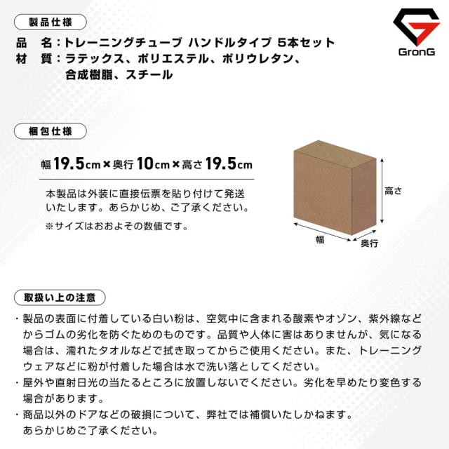 グロング GronGトレーニングチューブ チューブ トレーニング ハンドルタイプ 強度別5本セット 筋トレ ゴムチューブ