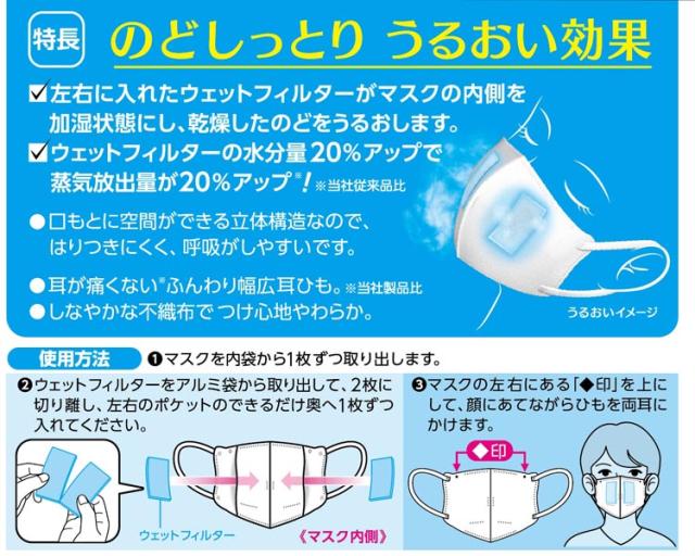 ●左右に入れたウェットフィルターがマスクの内側を加湿状態にし、乾燥したのどをうるおします。