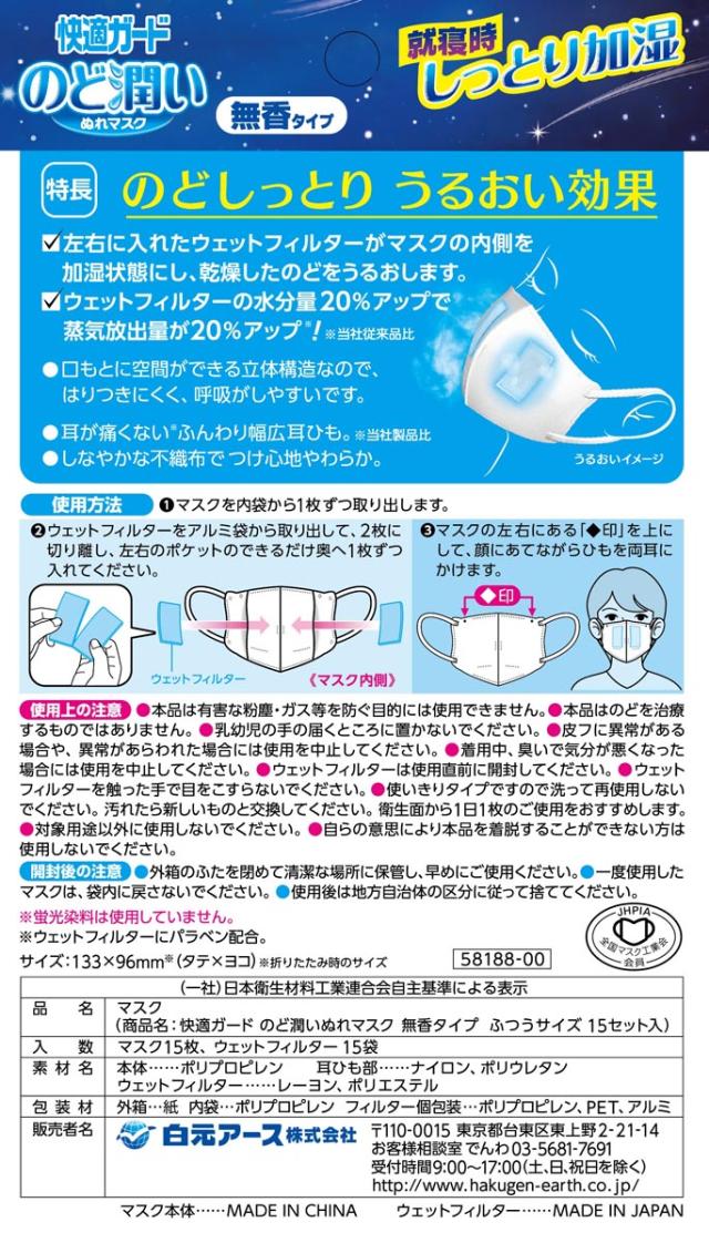 快適ガード のど潤いぬれマスク 無香タイプ ふつうサイズに関する詳細なお問合せは下記までお願いします