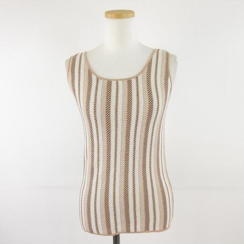 【中古】ローリーズファーム LOWRYS FARM ニットタンクトップ ストライプ ベージュ 茶 F *A340 レディース