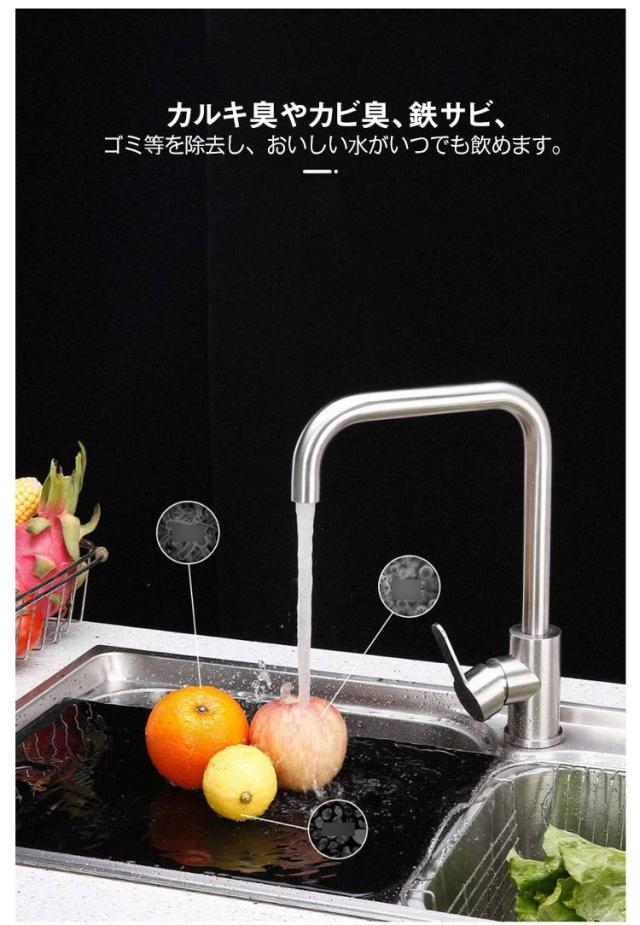 | 蛇口フィルター。6層濾過!取り付け簡単!兼用付け口! しっかりしていて抜けない。調節インタフェース。PVCスリープロ、大きさを調節する。クランプリングをアップグレード、脱落しない。 カルキ臭やカビ臭、鉄サビ、ゴミ等を除去し、おいしい水がいつでも飲めます。 | |