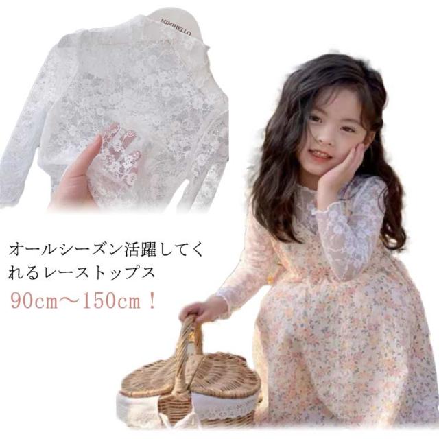 トップス チュール レース シアートップス キッズ 長袖 春夏 秋 春秋 シースルー 日焼け止め 花柄 インナー ハイネック レイヤード 透け感 カットソー UVカット キレイめ 華やか 透け感 おしゃれ シースルートップス90cm 100cm 110cm 120cm 130cm 140cm 150cm