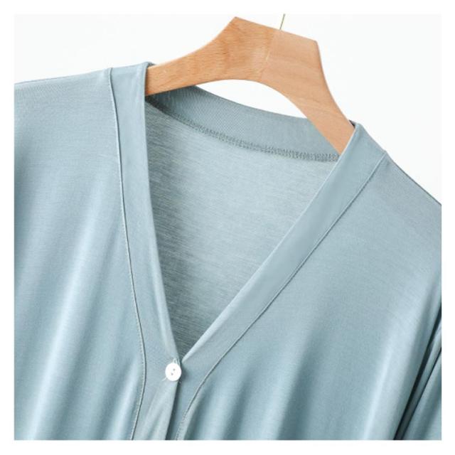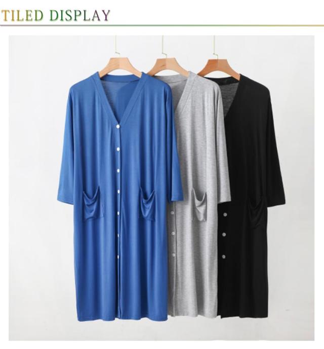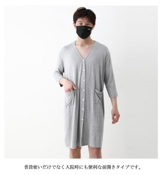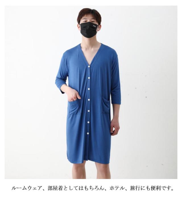 ワンピース パジャマ 春夏秋 前開き ホテル スリーパー パジャマ Vネック ナイトウェア ルームウェア ボタンダウン メンズ ロングガウン ポケット付き 伸縮性 部屋着 薄手 リラックス感