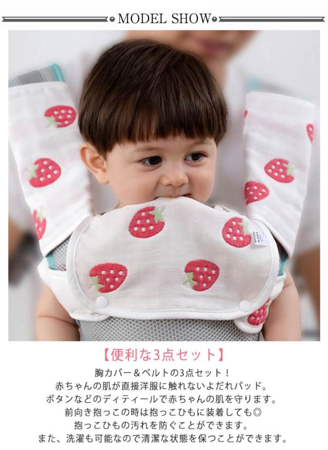 抱っこ紐 よだれカバー 3点セット 抱っこ紐用 抱っこ紐カバー よだれパッド 綿 6重ガーゼ 胸当て ベルトカバー リバーシブル 抱っこひも チャイルドシート 胸カバー&ベルトの3点セット シンプル おしゃれ 全20柄 送料無料