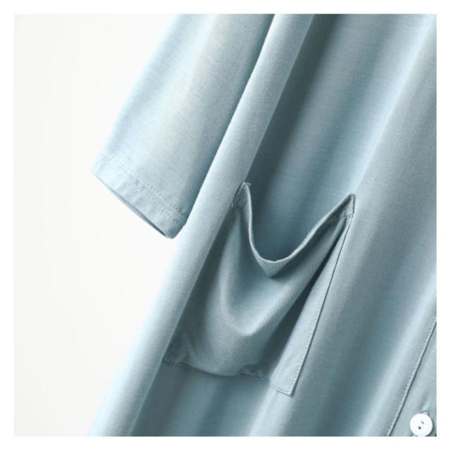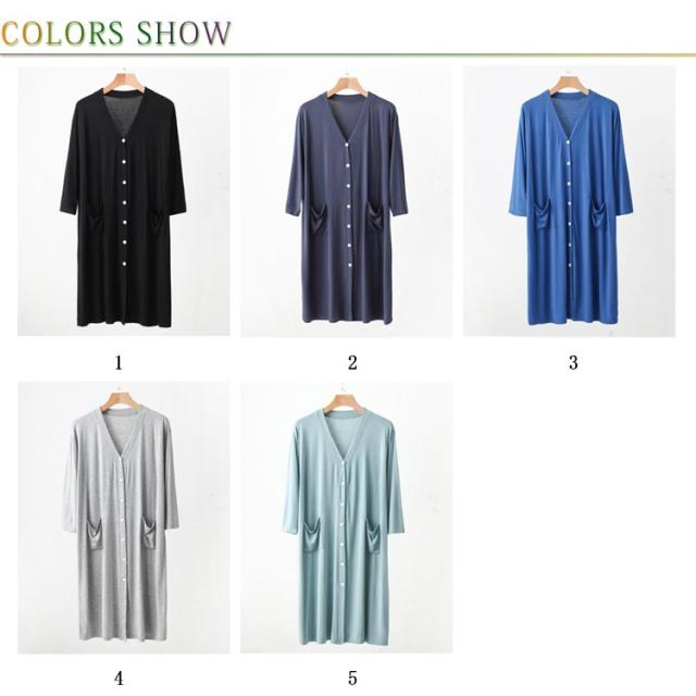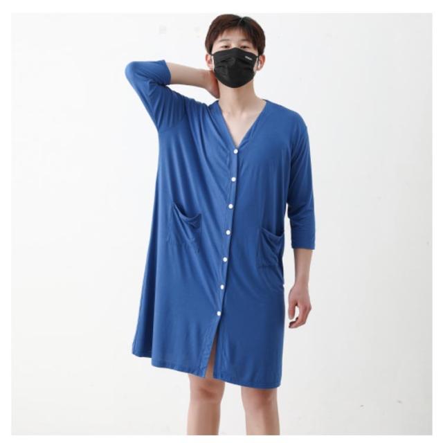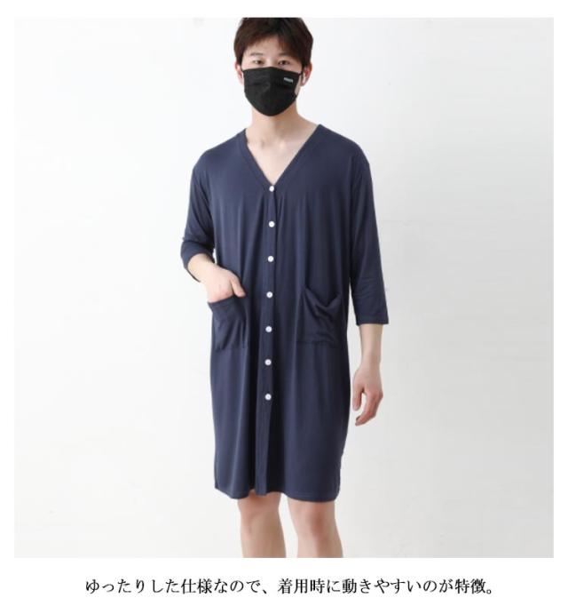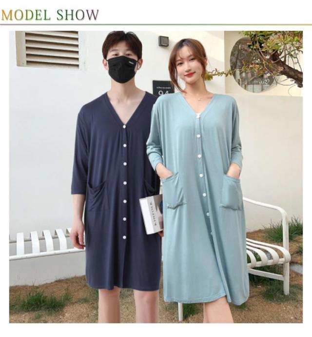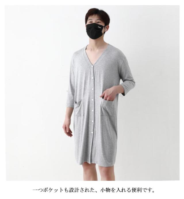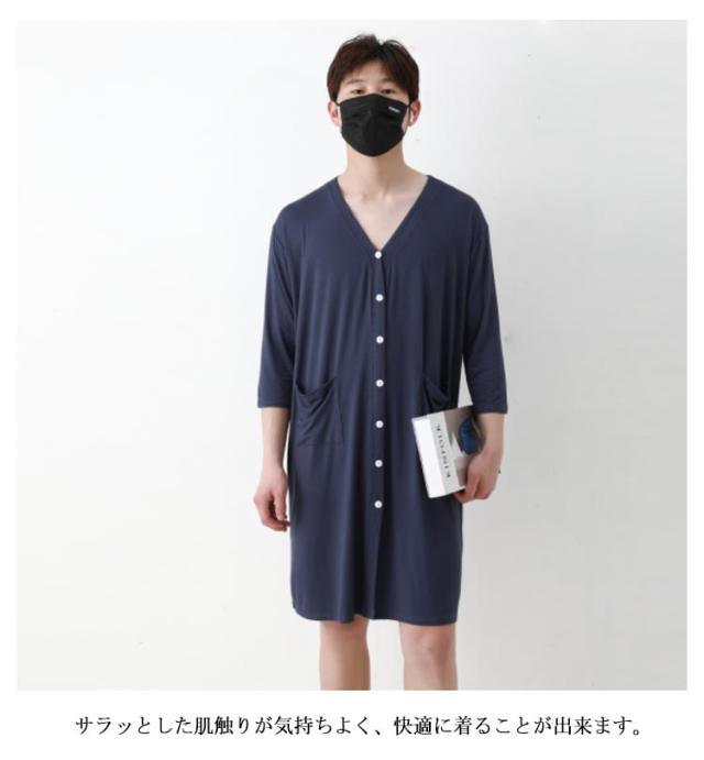 ルームウェア メンズ 前開き パジャマ ワンピース パジャマ ボタンダウン 七分袖 春夏秋 ホテル ナイトウェア Vネック ロングガウン ポケット付き 伸縮性 部屋着 薄手 リラックス感