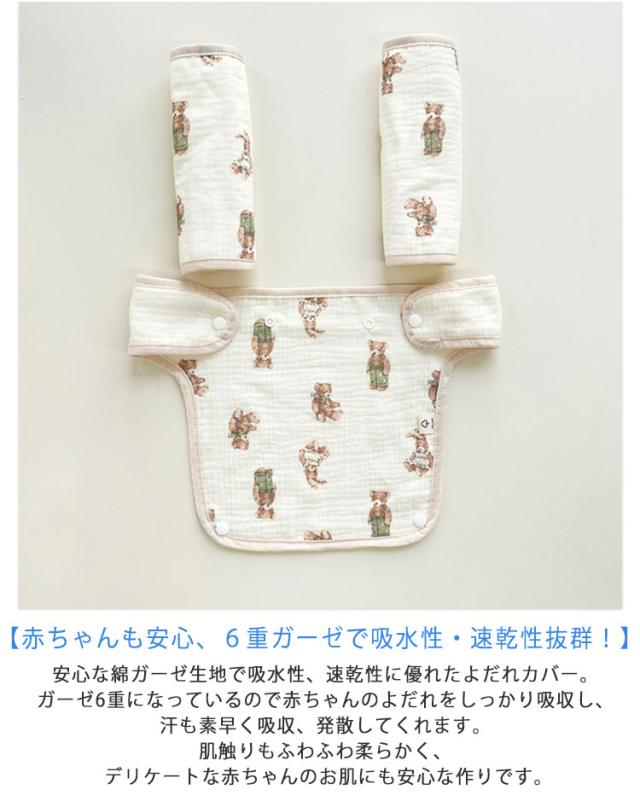 抱っこ紐 よだれカバー 3点セット 抱っこ紐用 抱っこ紐カバー よだれパッド 綿 6重ガーゼ 胸当て ベルトカバー リバーシブル 抱っこひも チャイルドシート 胸カバー&ベルトの3点セット シンプル おしゃれ 全7柄 送料無料