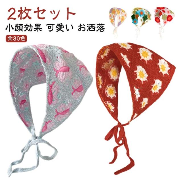 2枚セット ヘアバンド レディース 三角巾 小顔効果 全30色 2枚セット ヘアアクセサリー バブーシュカ ヘアターバン ヘッドドレス ニットフラワー ヘッドスカーフ カチューシャ カジュアル お洒落 旅行 梅雨対策