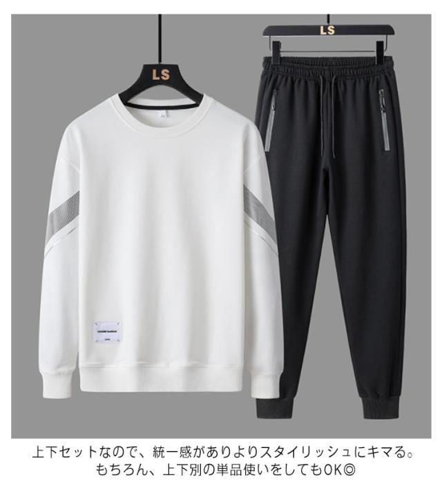 スウェット スエット ジャージ 上下セット セットアップ 裏起毛タイプあり 防風 防寒 暖かい ジョガーパンツ ファスナー付きポケット クルーネック 丸首 長袖 スポーツ アウトドア ストリート系 カジュアル おしゃれ スポーツウェア トレーニング ダンス 春 秋 冬