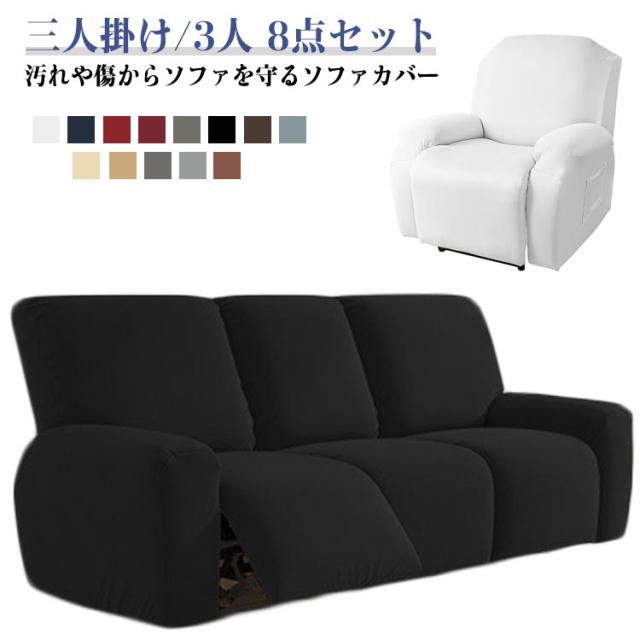 ソファカバー 8点セット マッサージチェア カバー サイドポケット 三人掛け ストレッチ 肘付き リクライニングチェアカバー マッサージチェア フィットタイプ 無地 マッサージソファ用着せ替えカバー 肘あり 応接ソファー リビングソファー 椅子カバー 汚れ防止 猫対策