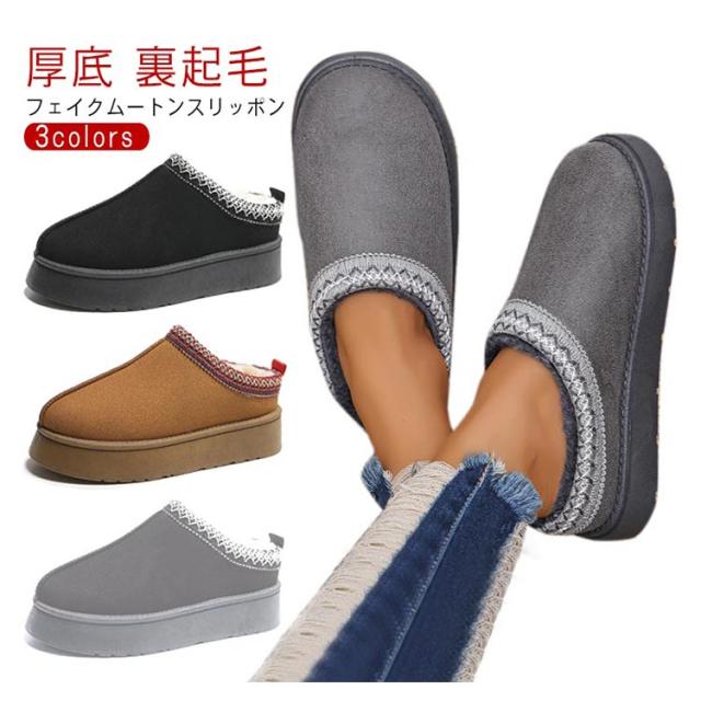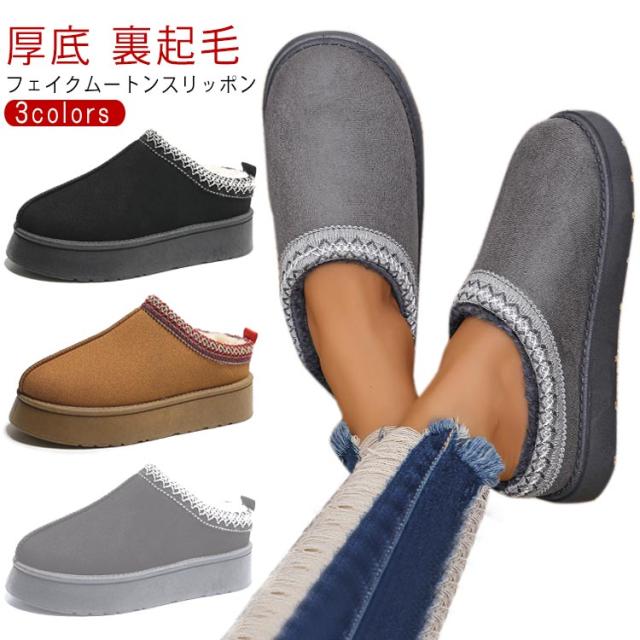 ムートンブーツ フラットブーツ ショート ムートンスリッポン 裏起毛 エコファー ディース かかとなし ムートンスリッポン スリッパ ムートン ぺたんこ靴 スリッポン ブーツ 痛くない 歩きやすい