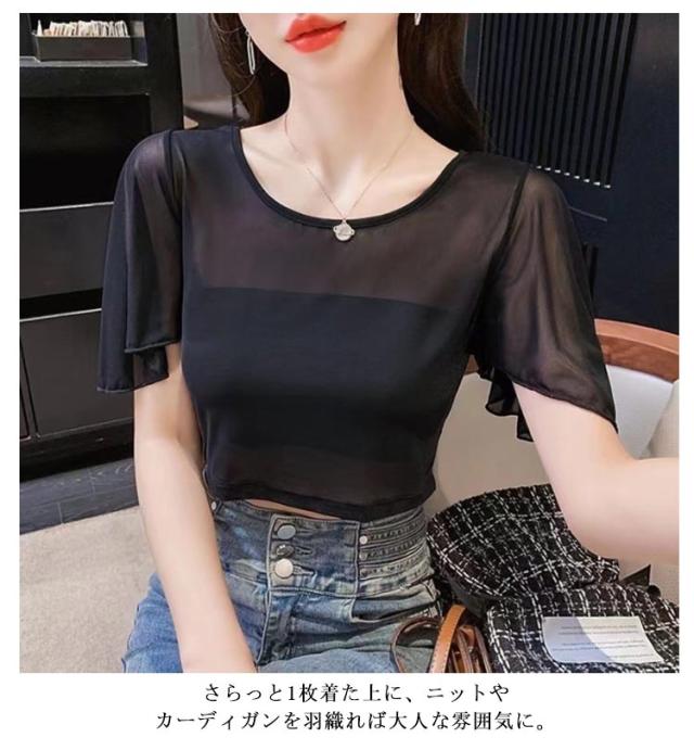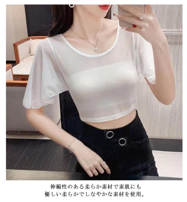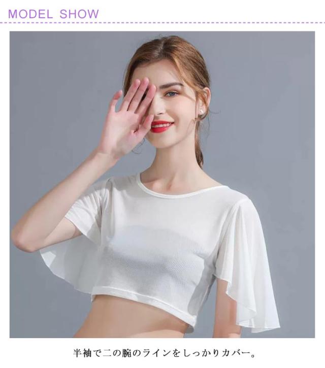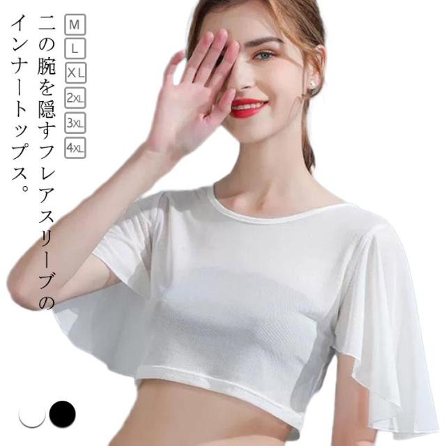 | 二の腕を隠すフレアスリーブのインナートップス。半袖で二の腕のラインをしっかりカバー。 透け感のあるフレアーデザイン。動く度にふわっと揺れて上品な印象に。暑い時季でも快適に着こなせます。 伸縮性のある柔らか素材で素肌にも優しい柔らかでしなやかな素材を使用。 さらっと1枚着た上に、ニットやカーディガンを羽織れば大人な雰囲気に。 | |
