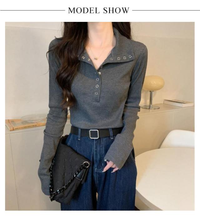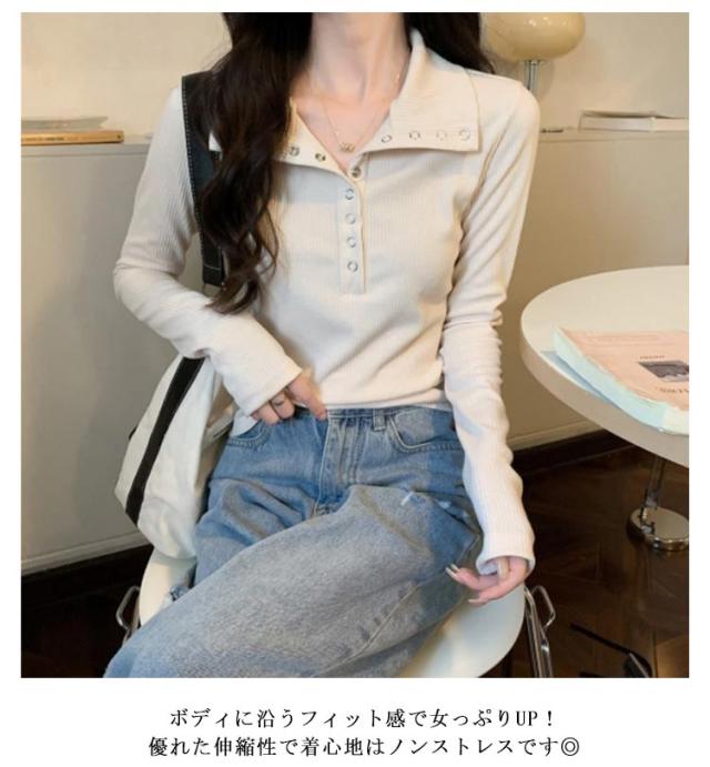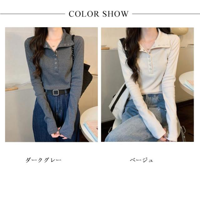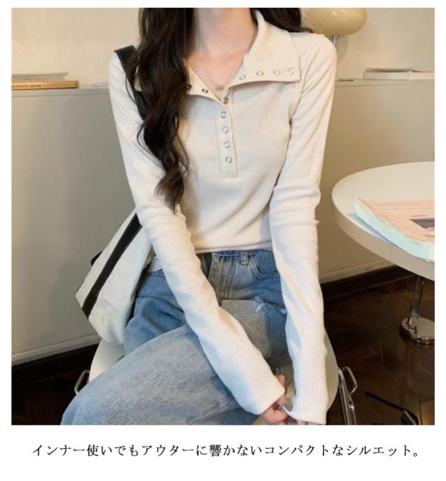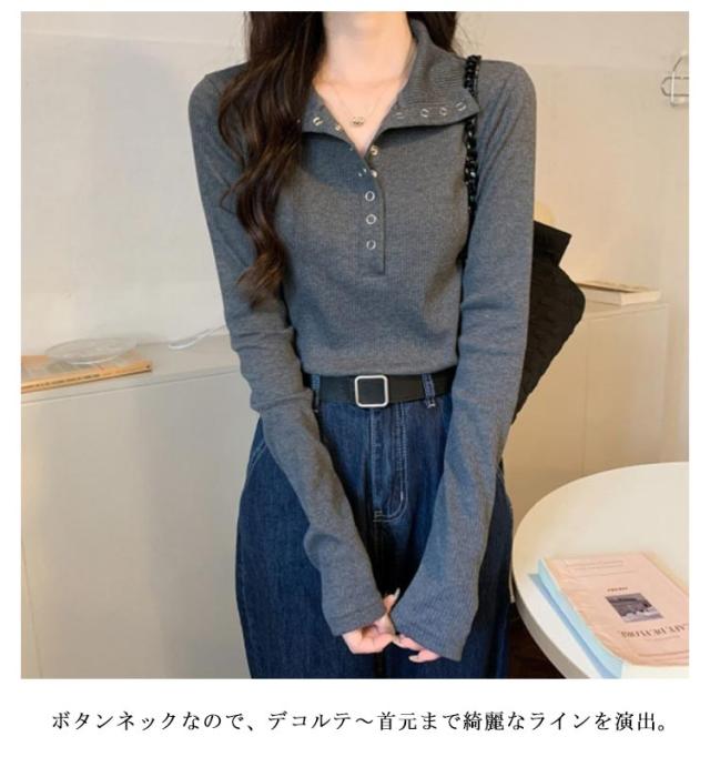セーター タートルネック リブニット タートルニット ボタンネック タイト レディース ハイネック ハイネックニット ニット ニットトップス プルオーバー 長袖 きれいめ 襟付きニット 春 秋 冬 グレー