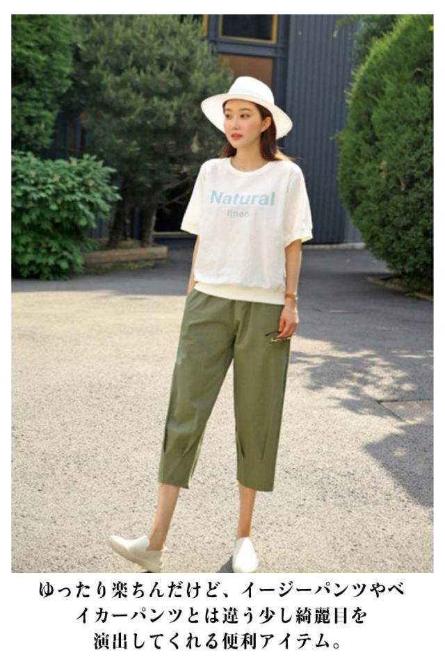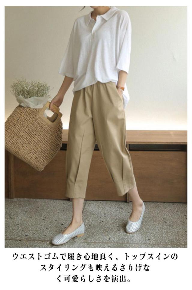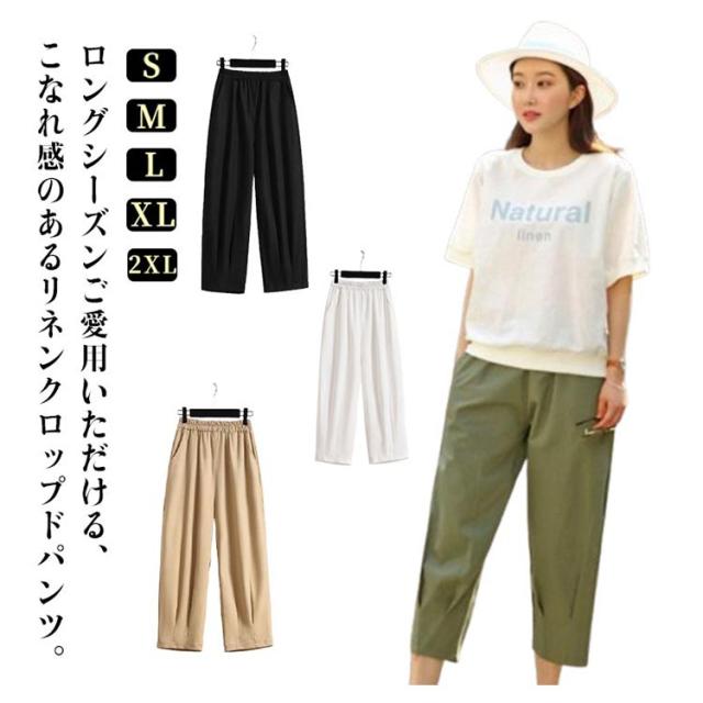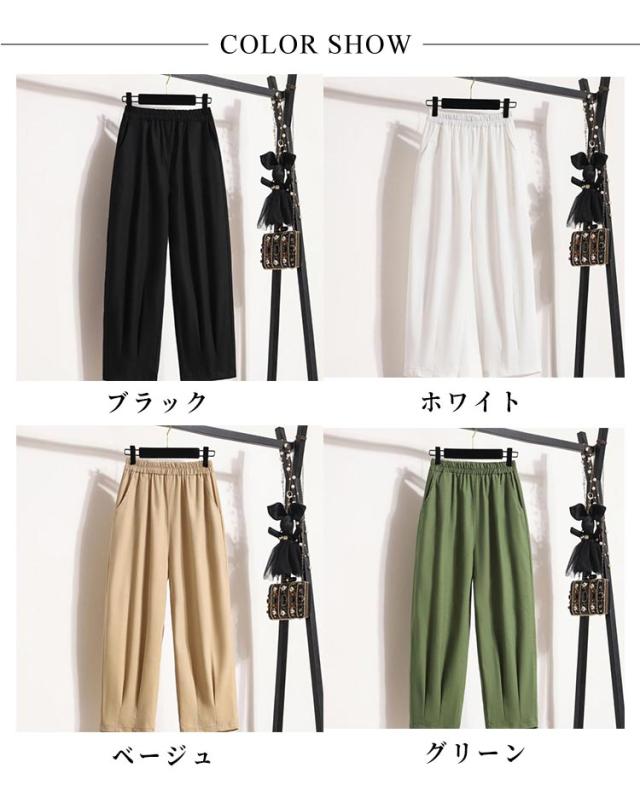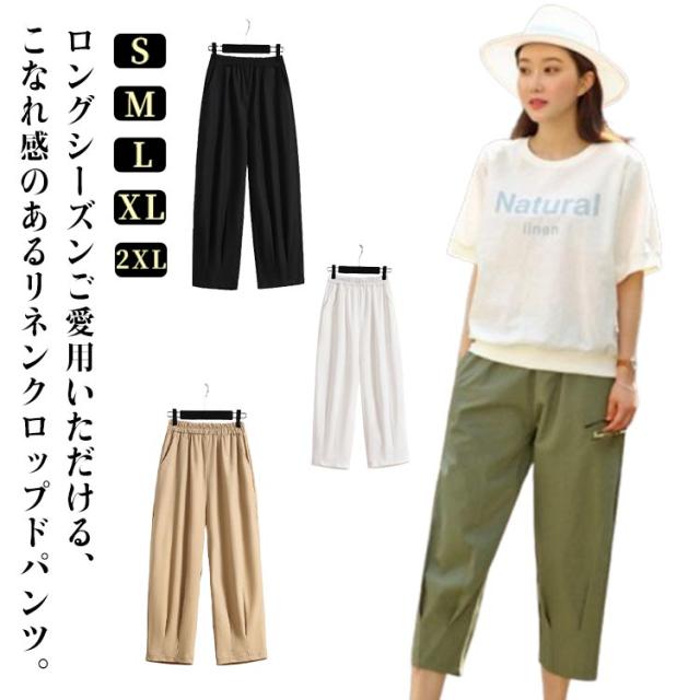 クロップド パンツ テーパードパンツ ウエストゴム チノボール バルーン サルエルパンツ レディース ワイドパンツ クロップドパンツ ゆるパンツ パンツ クロップド リネン 麻 ボトムス ゆるパン 着やせ リラックス