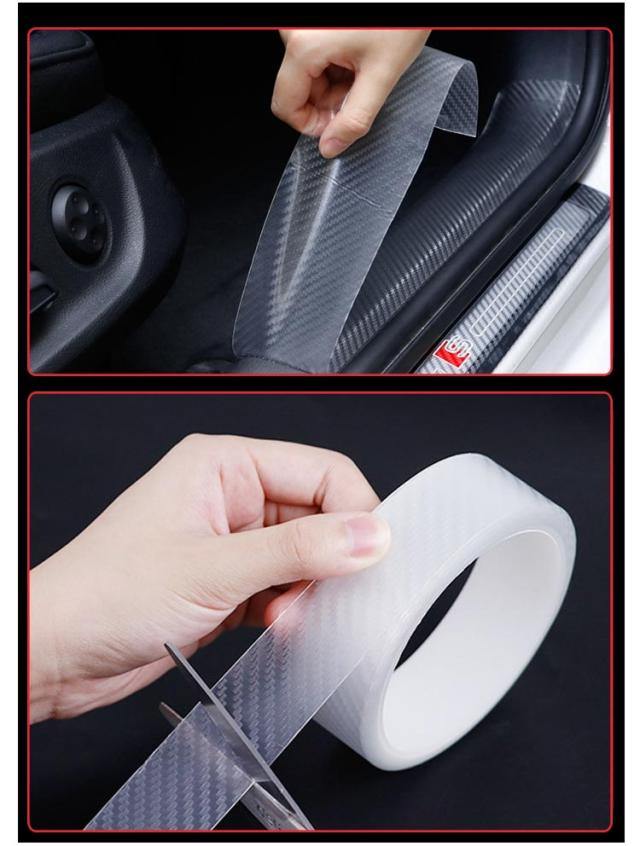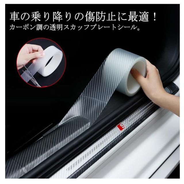 スカッフプレートシール 汎用 ステッカー カーボン調 傷防止 ドア 車 サイドステップ 透明 外装 スカッフプレートシール ヤスリクロス カーボンシート 足元傷防止 3D エッジモール 保護