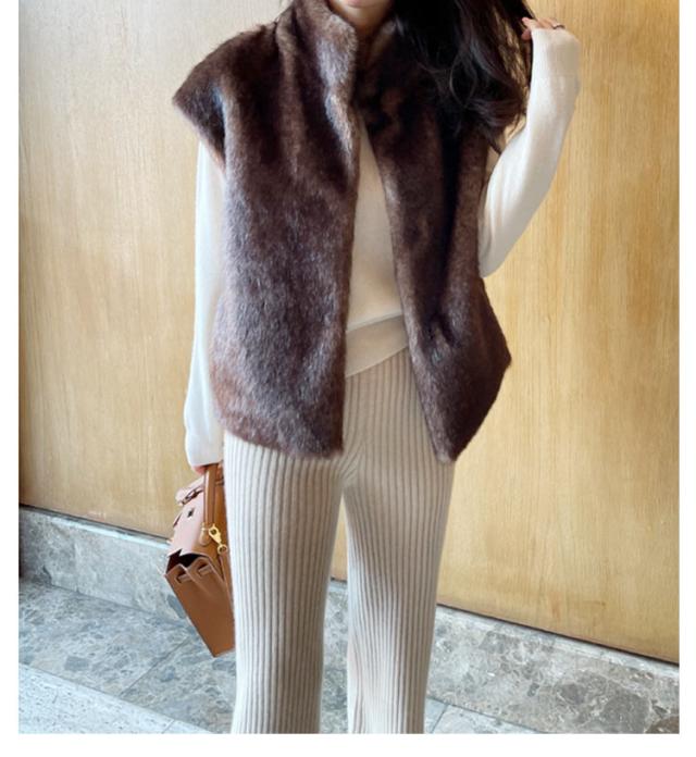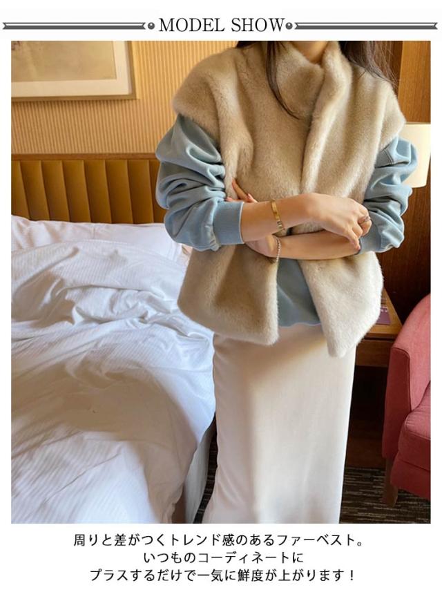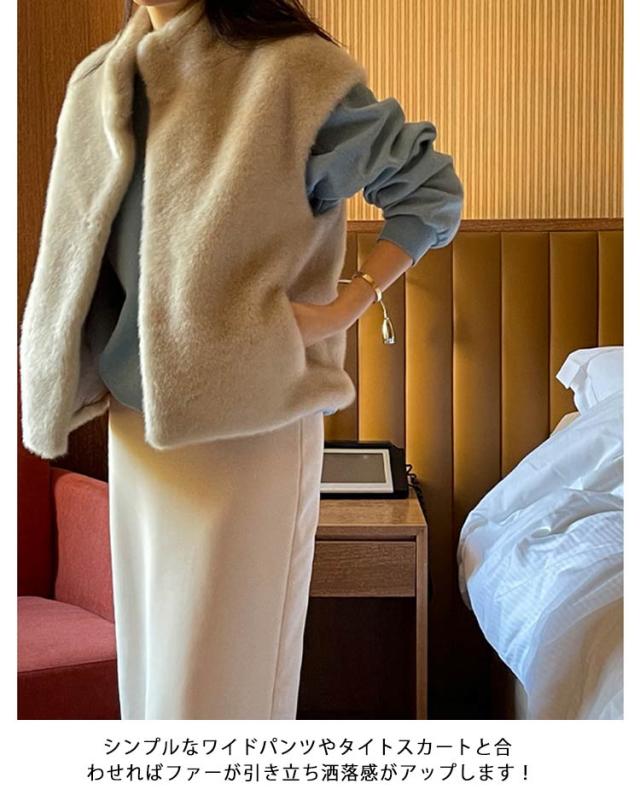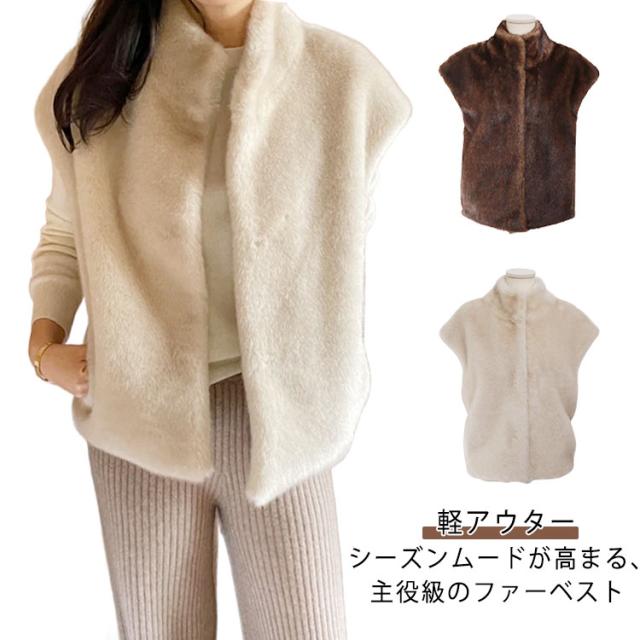 ジレ ベスト ベスト レディース フェイクファー スタンドカラー 防寒 アウター ファー ジレ 重ね着 ファー エコファー ジャケット 前開き 羽織り トップス ふわふわ もこもこ 冬 あったか 秋 ファー カジュアル エレガント フェミニン