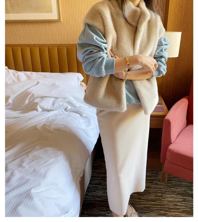 | シーズンムードが高まる、主役級のファーベスト。 首元をすっぽりと覆ってくれるスタンドカラーが大人っぽい印象で小顔効果も。 周りと差がつくトレンド感のあるファーベスト。いつものコーディネートにプラスするだけで一気に鮮度が上がります! シンプルなワイドパンツやタイトスカートと合わせればファーが引き立ち洒落感がアップします! | |