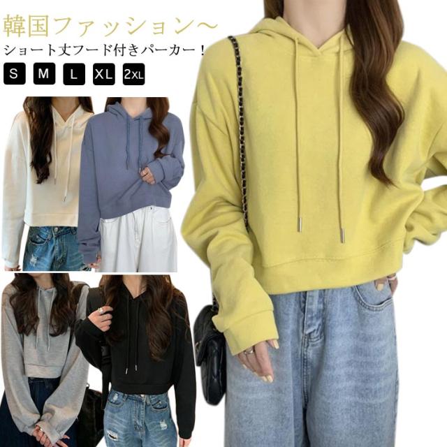 フードパーカー 薄手 春 フード付き トップス レディース パーカー 長袖トップス ルームウエア 長袖 韓国ファッション ショートパーカー プルオーバートップス フードパーカー シンプル 大人 カジュアル 短め丈 S M L XL