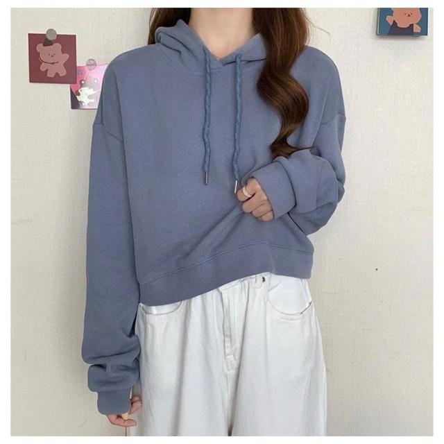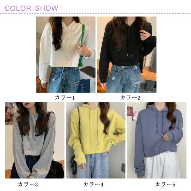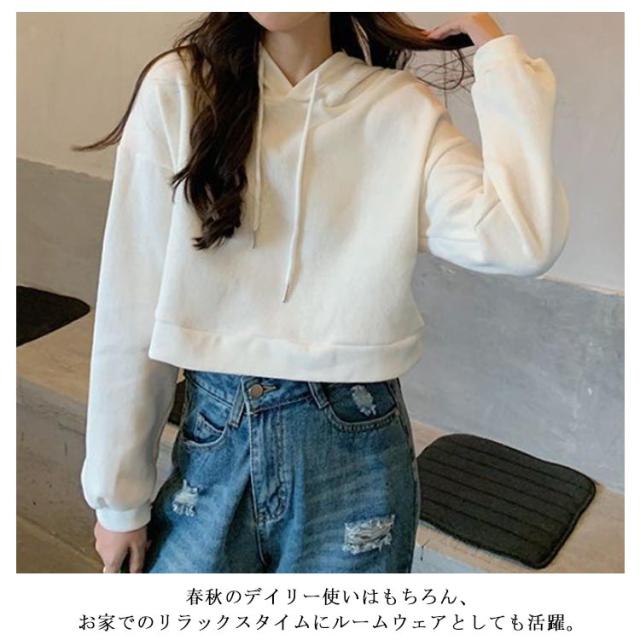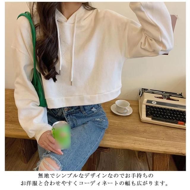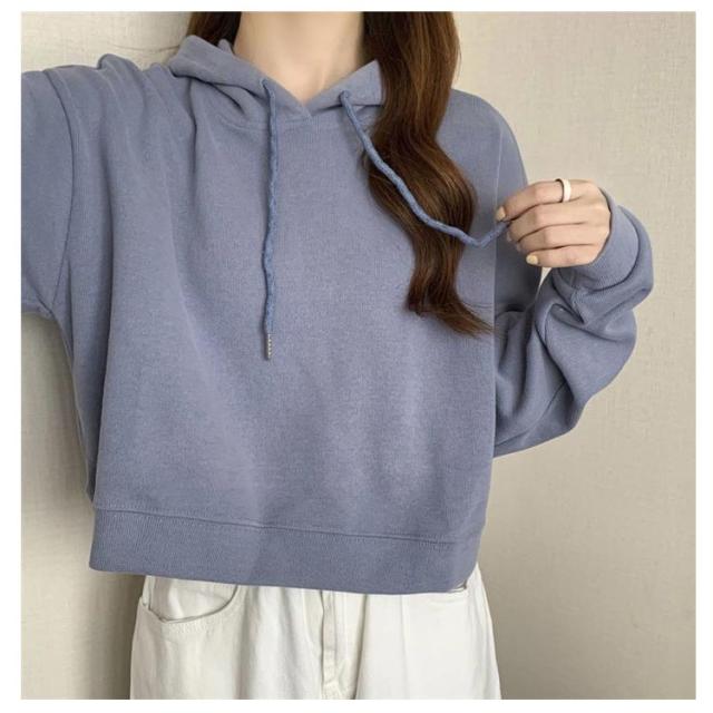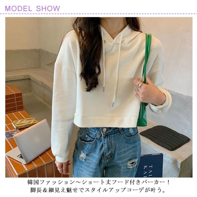 | 韓国ファッション〜ショート丈フード付きパーカー!脚長&細見え魅せでスタイルアップコーデが叶う。 無地でシンプルなデザインなのでお手持ちのお洋服と合わせやすくコーディネートの幅も広がります。 春秋のデイリー使いはもちろん、お家でのリラックスタイムにルームウェアとしても活躍。 | |