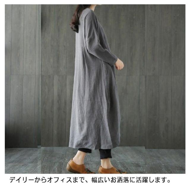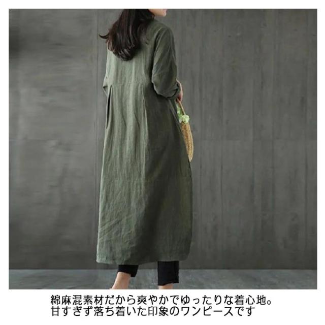 シャツワンピース 着痩せ ワンピ 長袖 コットンワンピース ワンピース きれいめ 綿麻 ロングワンピース Aライン マキシワンピース 無地 ロング aライン レディース カジュアル 体型カバー 春 オーバーサイズ ワンピース 大きいサイズ 30 40代