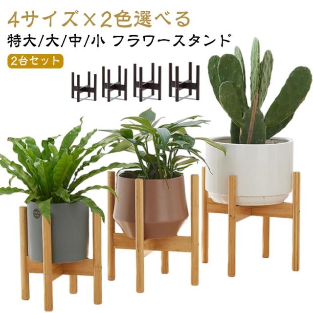 | フラワースタンド 特大/大/中/小 4サイズ×2色選べる 【2台セット】 【ちょうどいいサイズ】 植木鉢を1つ置くのにちょうどいいサイズのフラワースタンドです。 シンプルな十字型の構造ながらも植木鉢をしっかり支える丈夫な作りです。 スタンドは上下反対にしても使用できるので、お好みの高さの方でご使用ください。 【お部屋にマッチ】 シンプルながらも暖かみを感じる木目調のデザインで、植物とも調和するだけではなくお部屋にも馴染んで使いやすいアイテムです。 植木鉢をただ床に置くのではなく、このフラワースタンドに置いて位置を高くすることでお部屋にもメリハリが出てオシャレな空間を演出します。 【優れた特徴】 ・防水効果があるので、水やりや水捌けの際に濡れてしまっても大丈夫です。 ・竹素材を採用しているので、一般的な木材に比べて腐りにくく嫌な臭いがしないという特徴があります。 | |