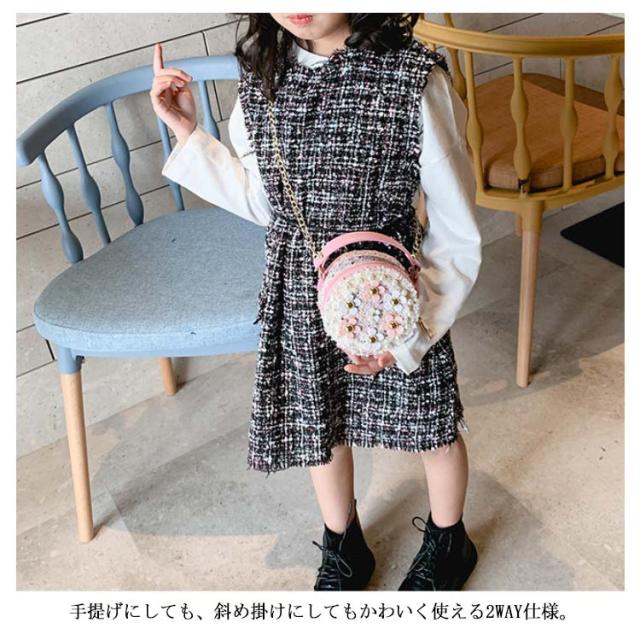 フォーマル キッズ 丸型 パーティーバッグ 女の子 七五三 手提げ バッグ バッグ パーティーバッグ ツイード ショルダーバッグ ラウンドバッグ 2WAY プリンセス 可愛い ミニバッグ お祭り お祝い 誕生日 クリスマス プレゼント