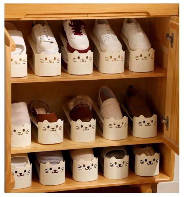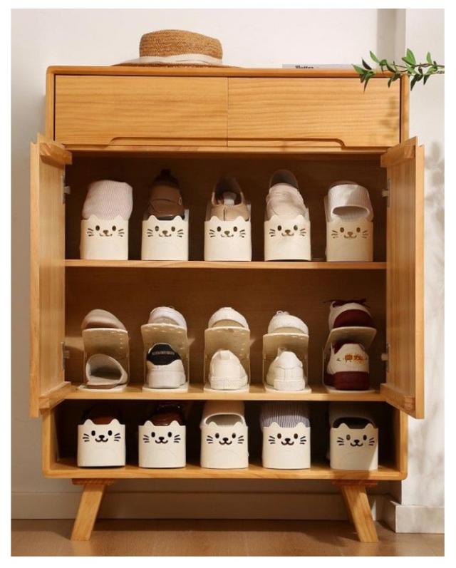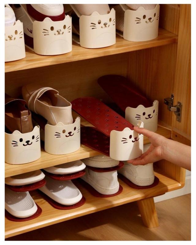 シューズスタンド かわいい猫型 靴 かわいい猫型 くつホルダー くつ 靴ホルダー 収納 シューズラック スリム シューズホルダー シューズストッカー 8個入り 靴収納 靴ストッカー シューズ 靴整理 省スペース アイボリー ブラウン