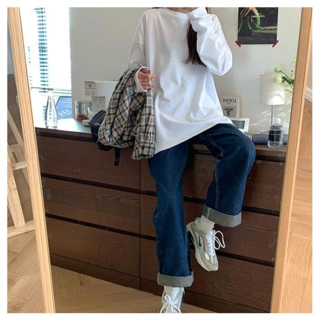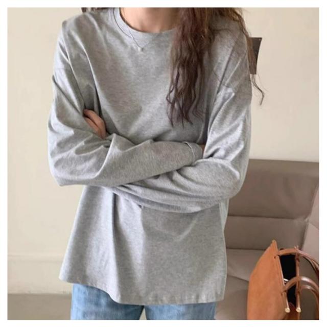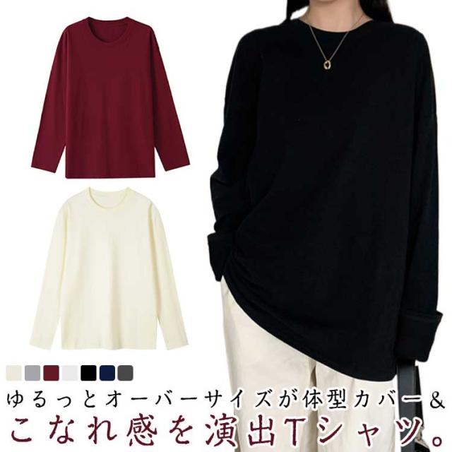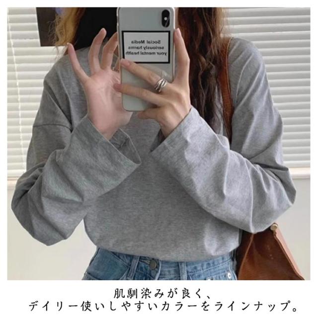 クルーネック tシャツ ロンT Tシャツ 長袖Tシャツ オーバーサイズ 体型カバー 綿混 夏 ゆったり 送料無料 ボリューム袖 カジュアル 春 送料無料 秋 シンプル 無地 トップス