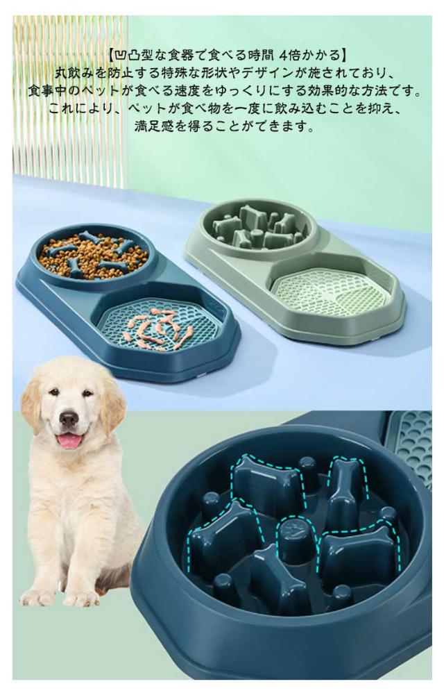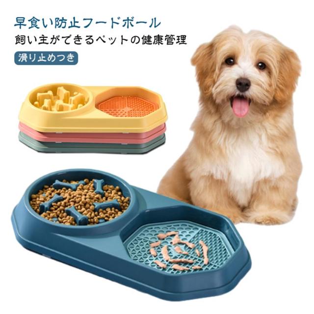 ダブルボウル 食器 猫 子犬 早食い防止 ペット 早食い防止 ドッグフード 大型犬 小型犬 早食い防止フードボウル ペットボウル 2連 スローフード 丸飲み 防止 ペット用品 丸洗い可能 餌入れ ペットフード 中型犬 早食い防止皿 早食い