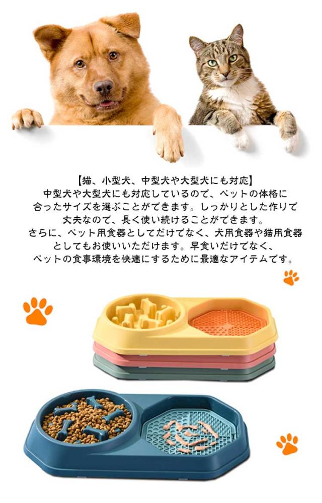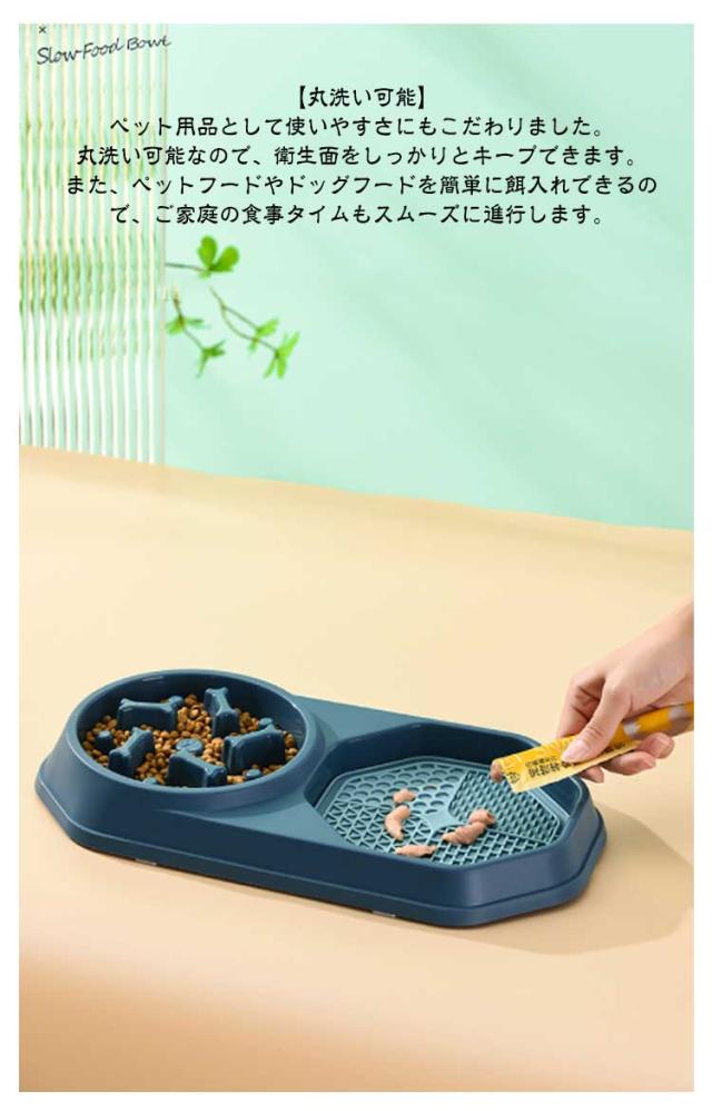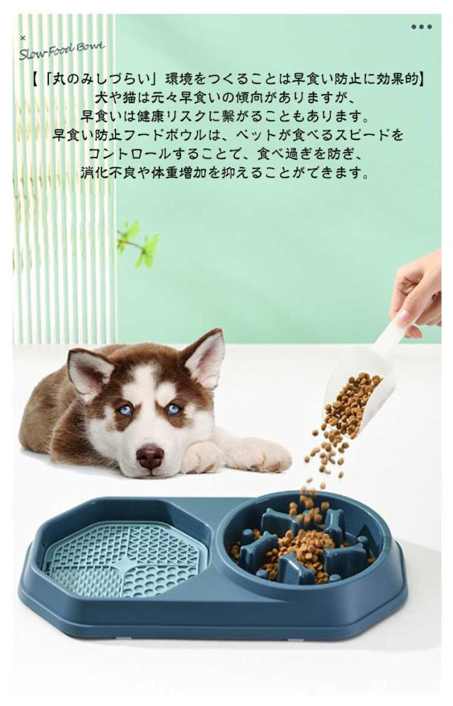 | 飼い主ができるペットの健康管理 早食い防止フードボール ペットの早食いを防ぐための画期的なアイテムが登場しました! 早食い防止食器は、小型犬から大型犬、さらには猫にも対応しているので、愛するペットの食事環境を改善するのに最適です。 【「丸のみしづらい」環境をつくることは早食い防止に効果的】 犬や猫は元々早食いの傾向がありますが、早食いは健康リスクに繋がることもあります。 早食い防止フードボウルは、ペットが食べるスピードをコントロールすることで、食べ過ぎを防ぎ、消化不良や体重増加を抑えることができます。 【凹凸型な食器で食べる時間 4倍かかる】 丸飲みを防止する特殊な形状やデザインが施されており、食事中のペットが食べる速度をゆっくりにする効果的な方法です。 これにより、ペットが食べ物を一度に飲み込むことを抑え、満足感を得ることができます。 【滑り止めつき】 ポウルの底部は滑り止めのゴムがあるため、食事中にポウルがずれて溢れるのを防げます。 【丸洗い可能】 ペット用品として使いやすさにもこだわりました。丸洗い可能なので、衛生面をしっかりとキープできます。 また、ペットフードやドッグフードを簡単に餌入れできるので、ご家庭の食事タイムもスムーズに進行します。 【熱湯で消毒できる材質】 食後のベタつきも除きやすく衛生的に保ちやすいフードボウル 【猫、小型犬、中型犬や大型犬にも対応】 中型犬や大型犬にも対応しているので、ペットの体格に合ったサイズを選ぶことができます。しっかりとした作りで丈夫なので、長く使い続けることができます。 さらに、ペット用食器としてだけでなく、犬用食器や猫用食器としてもお使いいただけます。早食いだけでなく、ペットの食事環境を快適にするために最適なアイテムです。 ペットの健康を守りながら、楽しい食事タイムを提供するために、ぜひ早食い防止フードボウルをお試しください。ペットとの共に過ごす時間がより一層愛情あふれるものになることでしょう。 | |