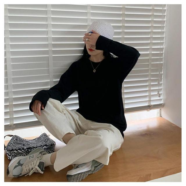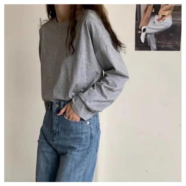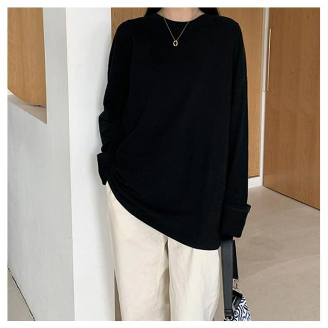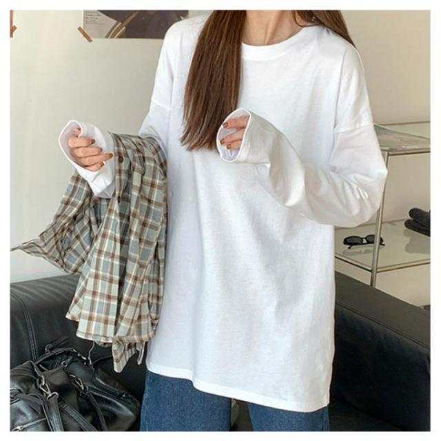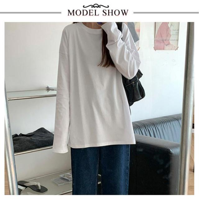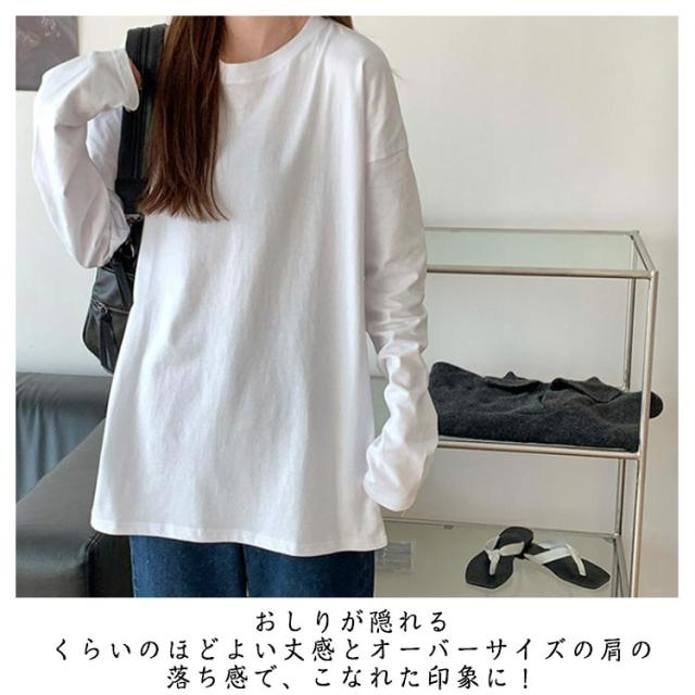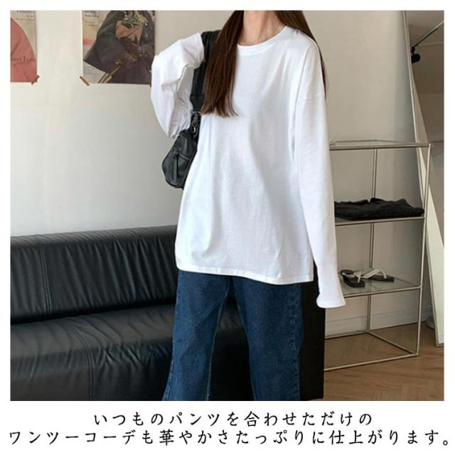 長袖tシャツ 送料無料 tシャツ オーバーサイズ 長袖Tシャツ カジュアル 春 綿混 体型カバー ゆったり ロンT ボリューム袖 クルーネック Tシャツ 夏 秋 シンプル 無地 トップス